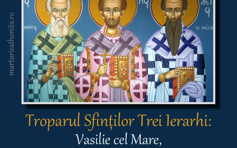Troparul Sfinților Trei Ierarhi: Vasilie cel Mare, Grigorie Teologul și Ioan Gură de Aur